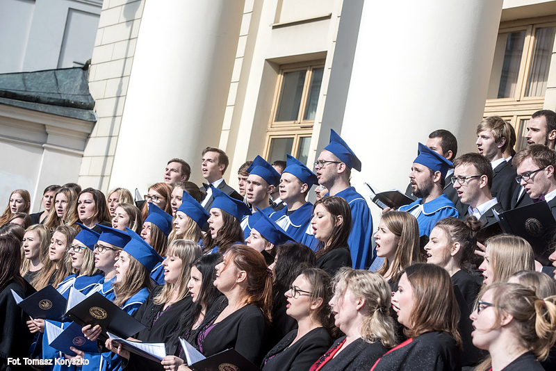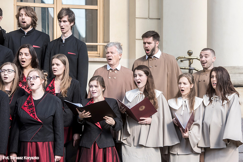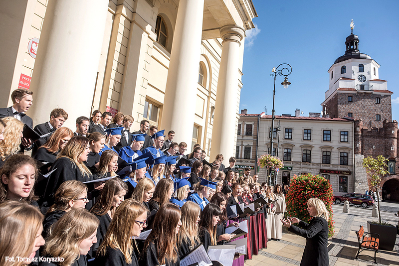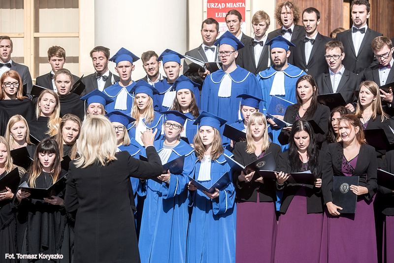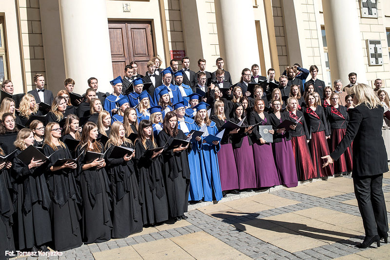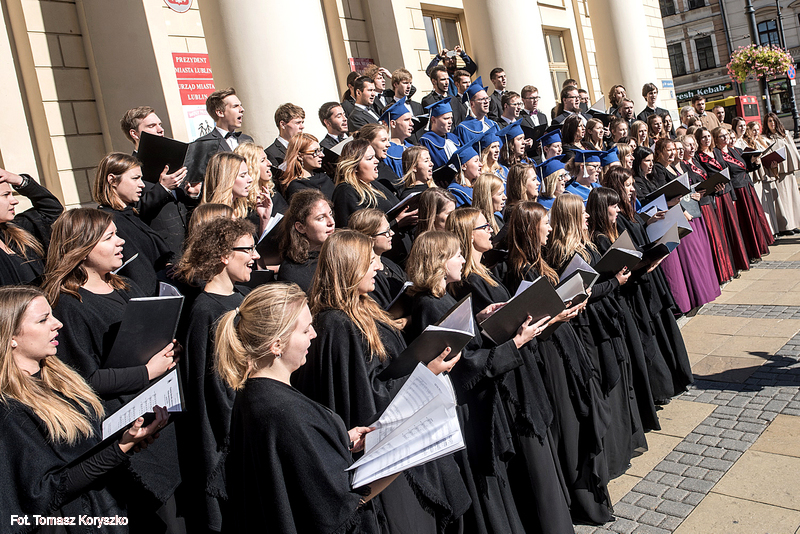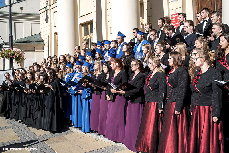 Chór Akademicki KUL wystąpił w czwartek przed lubelskim Ratuszem. Z okazji rozpoczęcia roku akademickiego wraz z innymi chórami uczelni publicznych Lublina wykonał m.in. „Gaudeamus igitur”.