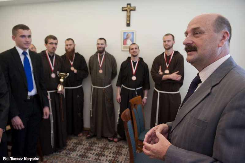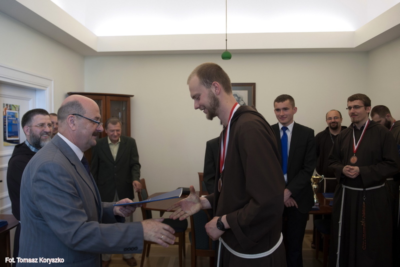 Dr hab. Krzysztof Narecki, prorektor ds. studenckich spotkał się z maratończykami oraz drużyną koszykówki.