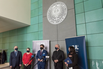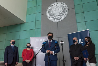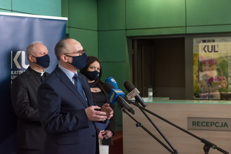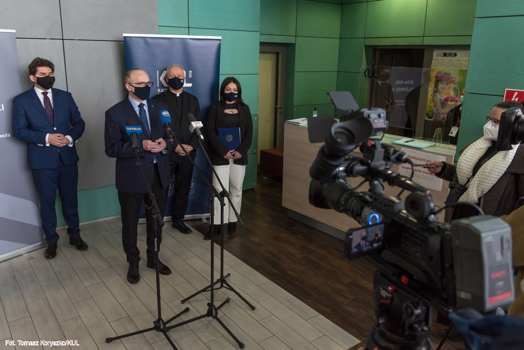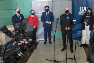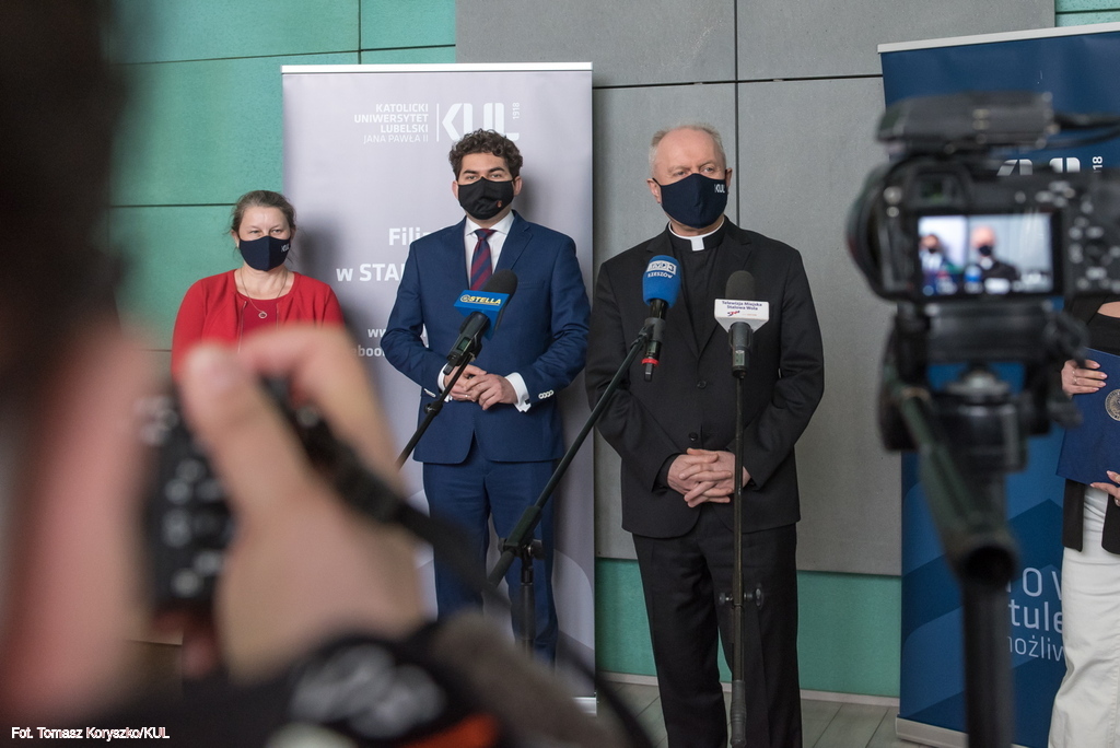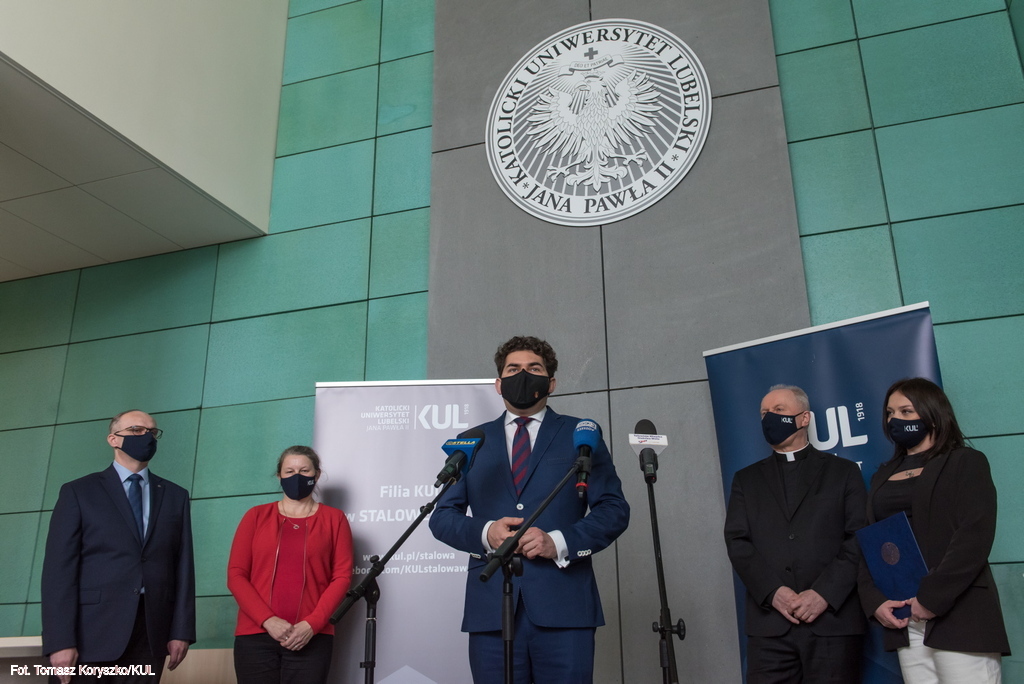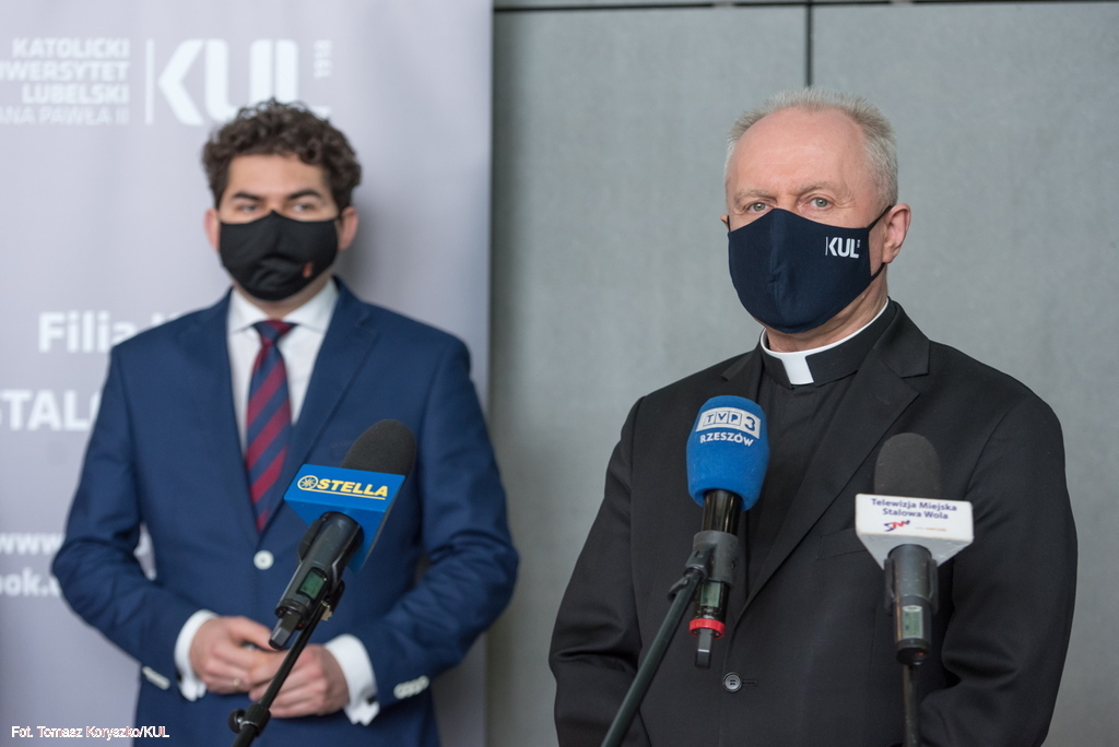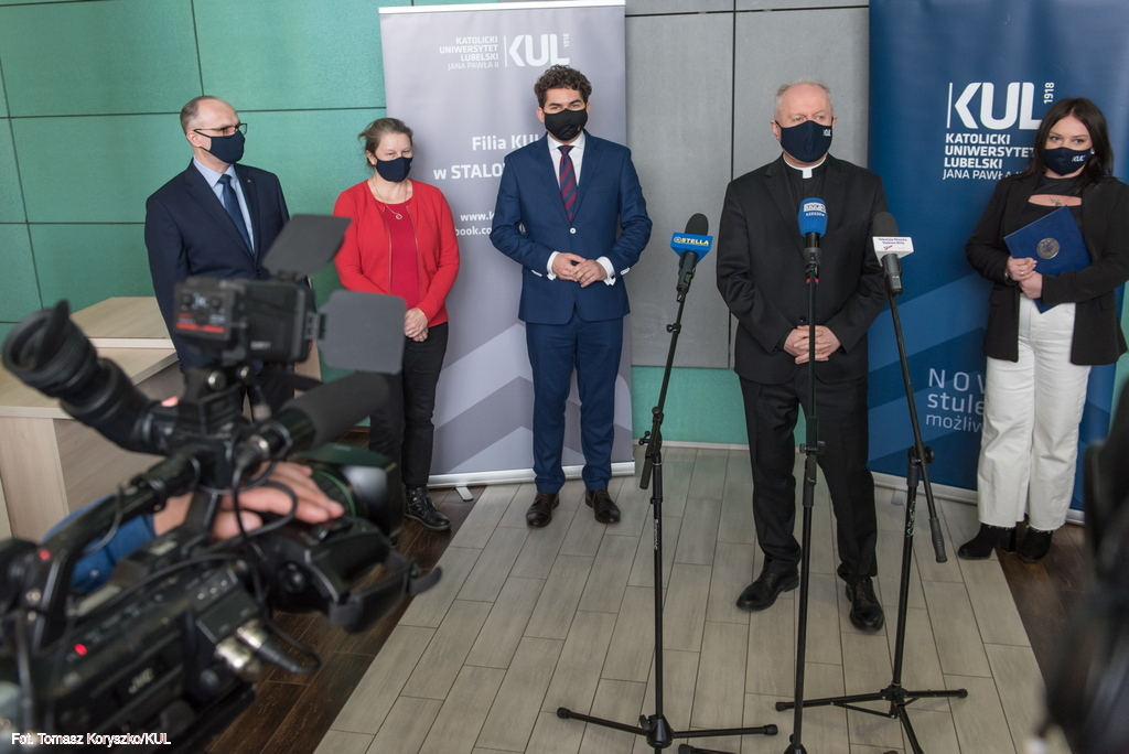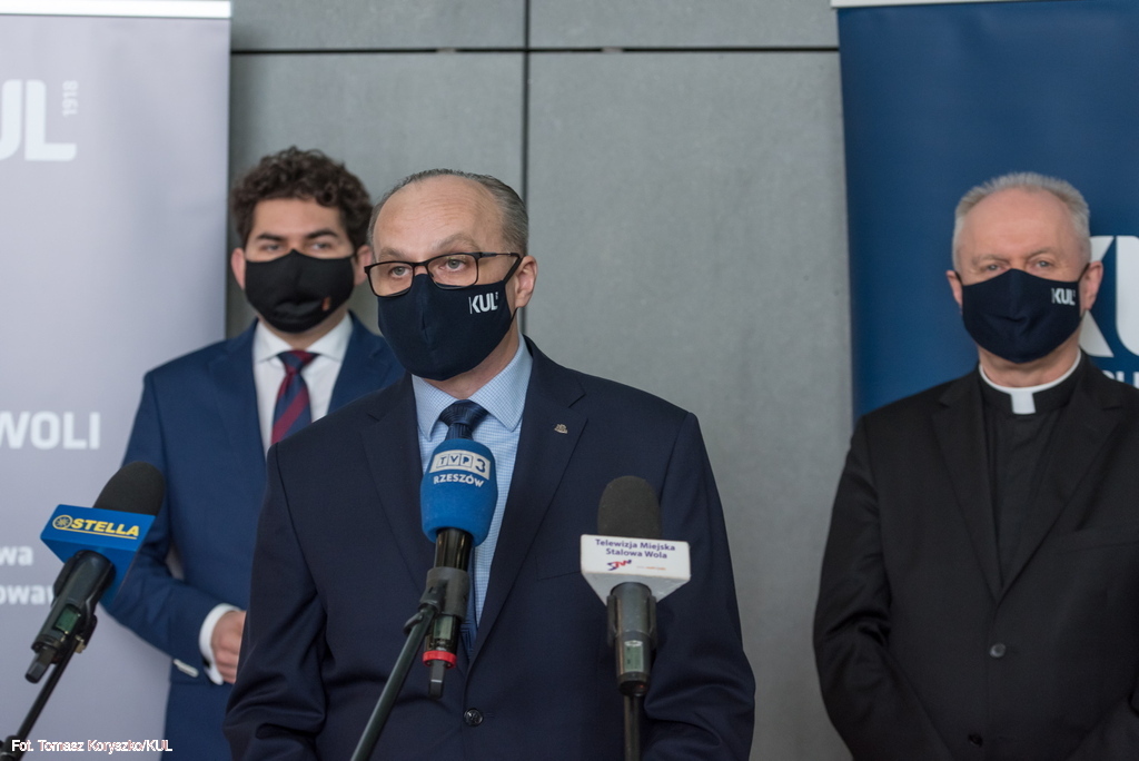 Plan rozwoju nowych kierunków studiów i podniesienie znaczenia Filii KUL w Stalowej Woli były tematem briefingu medialnego Rektora KUL prof. Mirosława Kalinowskiego i Prorektor ds. kształcenia dr hab. Ewy Trzaskowskiej, prof. KUL. W siedzibie Filii w spotkaniu uczestniczył także prezydent miasta Lucjusz Nadbereżny i kierujący Filią pełnomocnik Rektora KUL dr hab. Michał Wyrostkiewicz, prof. KUL.