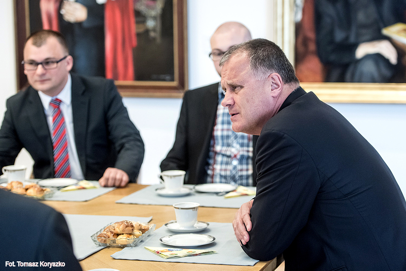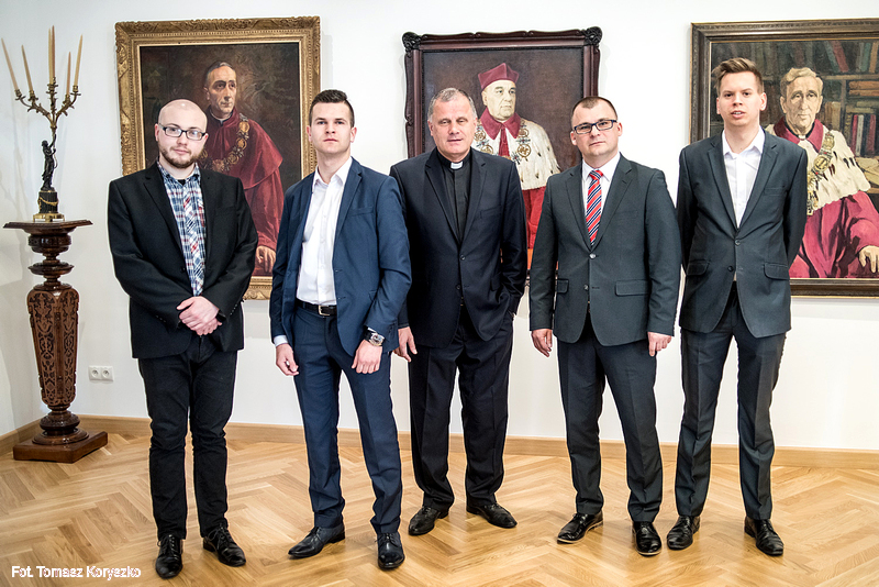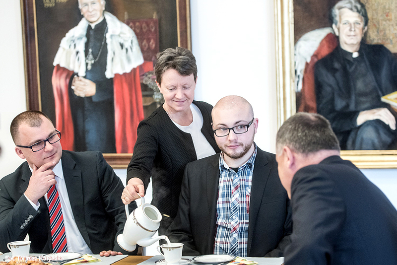 21.04.2016 - Śniadanie z Rektorem - gośćmi ks. prof. Dębińskiego byli studenci z Agencji Reporterskiej Passion TV