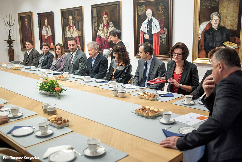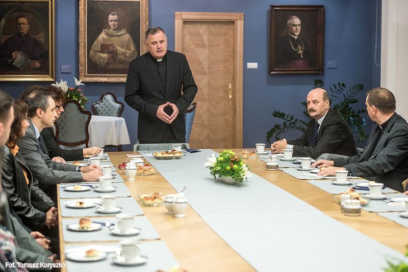 23.10.2015 - Śniadanie z Rektorem - gośćmi ks. prof. Dębińskiego były osoby organizujące inagurację roku akademickiego