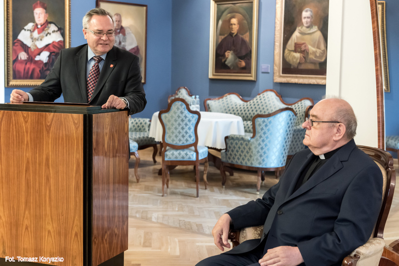 27.08.2020 - Wręczenie księgi pamiątkowej ks. prof. Januszowi Mariańskiemu