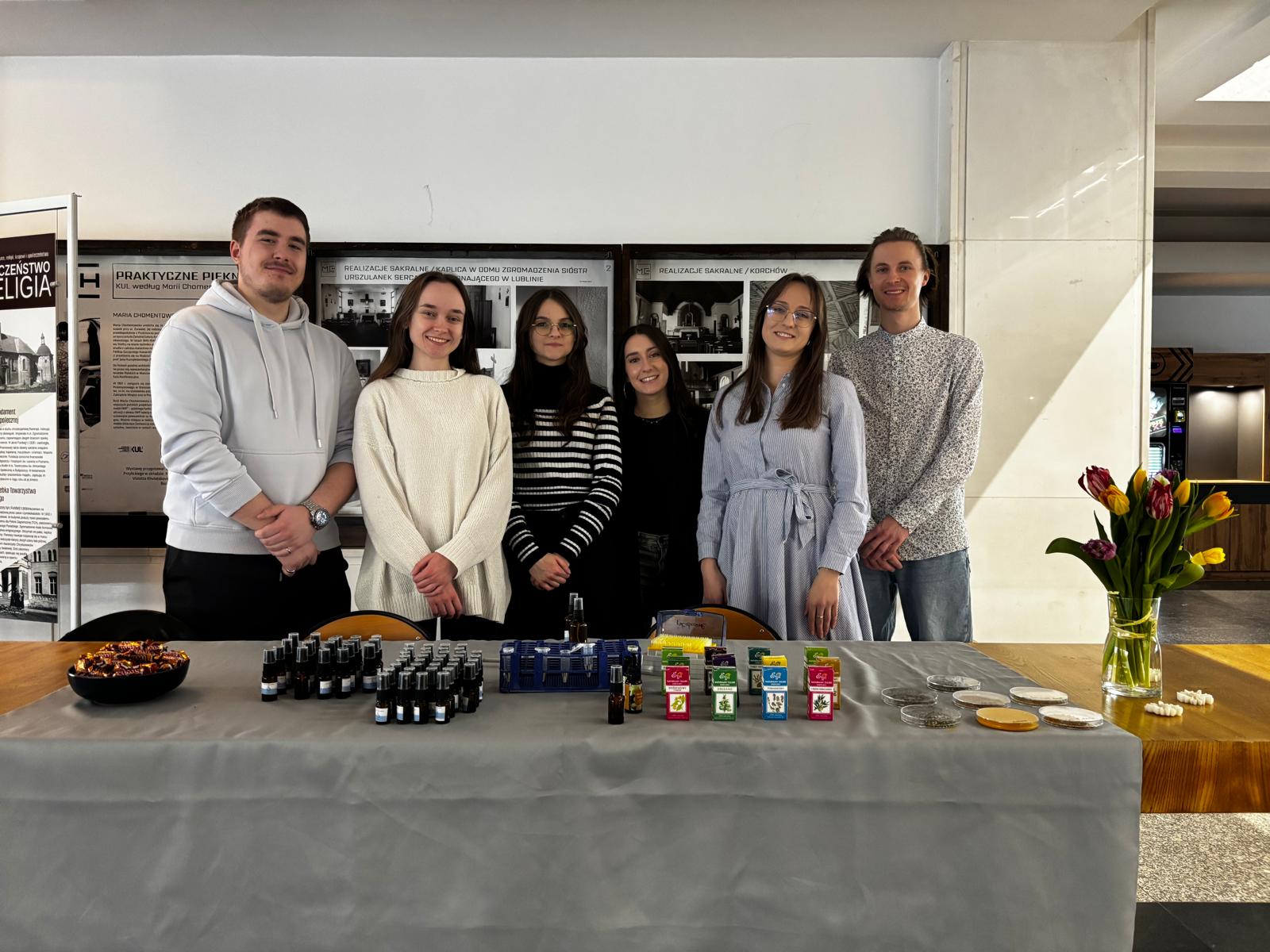 oraz członkowie Koła Naukowego Biotechnologii: Kinga Ożga, Arkadiusz Jastrzębski, Szymon Strawa, Aleksandra Niziołek oraz Mariia Karpova.
