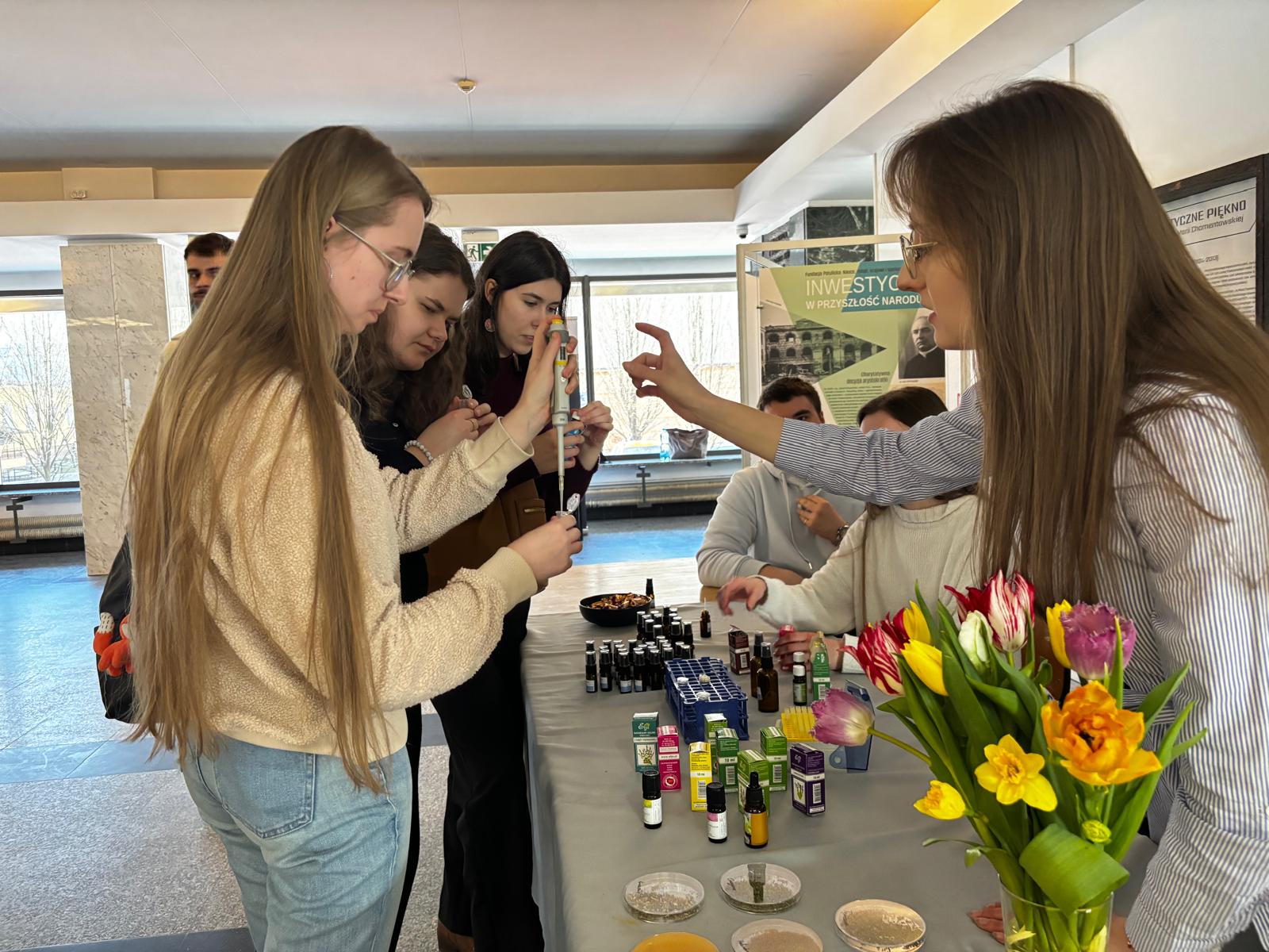 Uczestnicy dowiedzieli się, czym są olejki naturalne, jak działają oraz dlaczego wykazują właściwości antymikrobiologiczne. Warsztaty cieszyły się dużym zainteresowaniem zarówno wśród uczniów szkół podstawowych, jak i starszych pasjonatów nauki, którzy chętnie zaglądali do świata biologii i chemii od praktycznej strony.