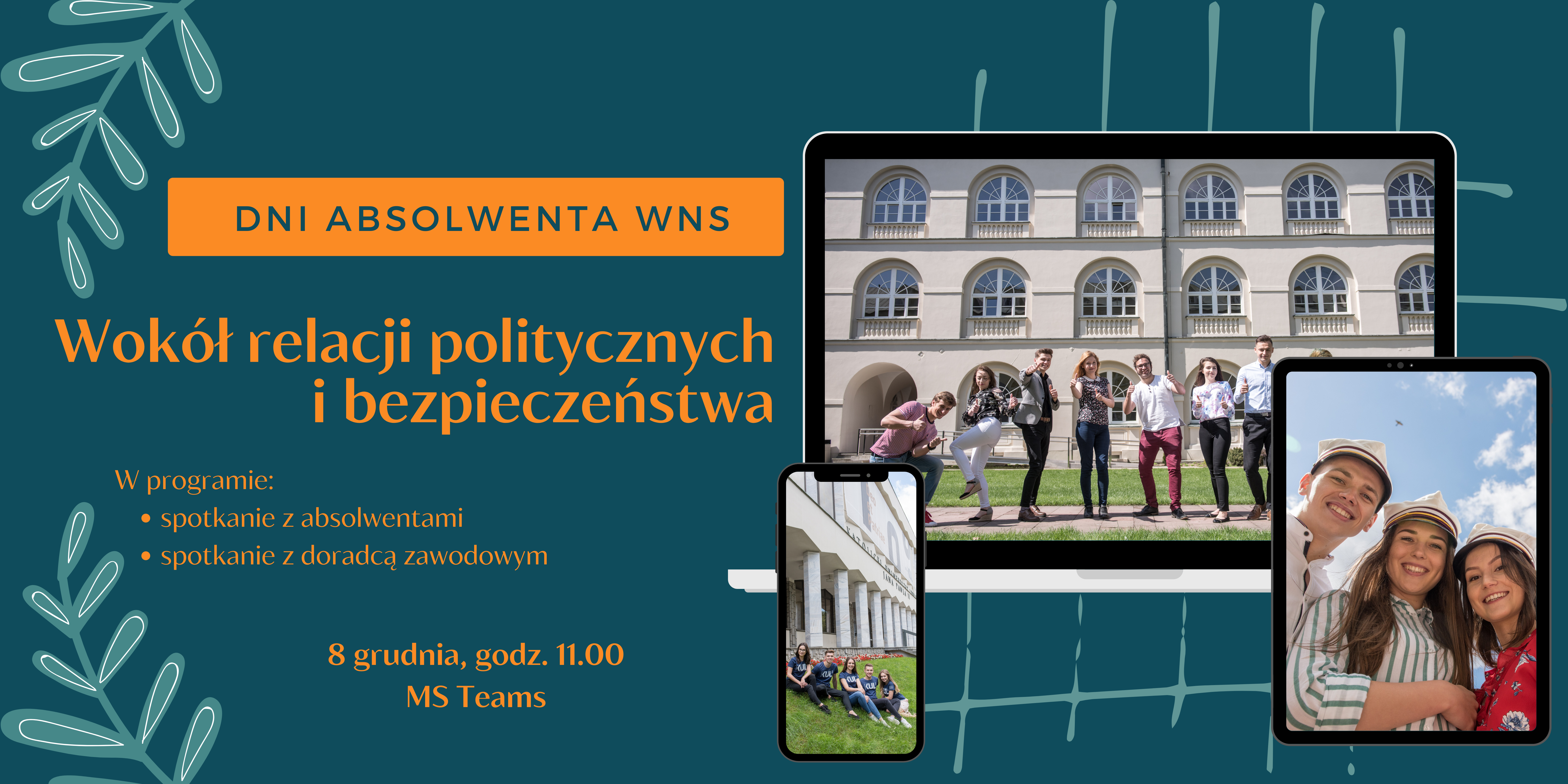 W najbliższą środę, 8 grudnia w ramach Dni Absolwenta obędzie się spotkanie w Instytucie Nauk o Polityce i Administracji KUL z absolwentami, studentami i doradcą zawodowym. Spotkanie online na platformie MS Teams rozpocznie się o godz. 11.00.