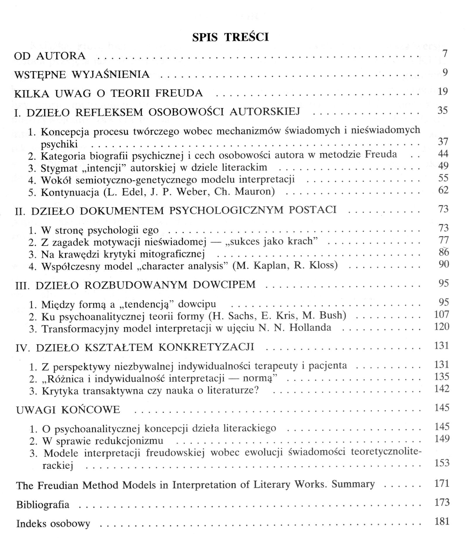- Modele freudowskiej metody badania dzieła literackiego, Lublin 1991
