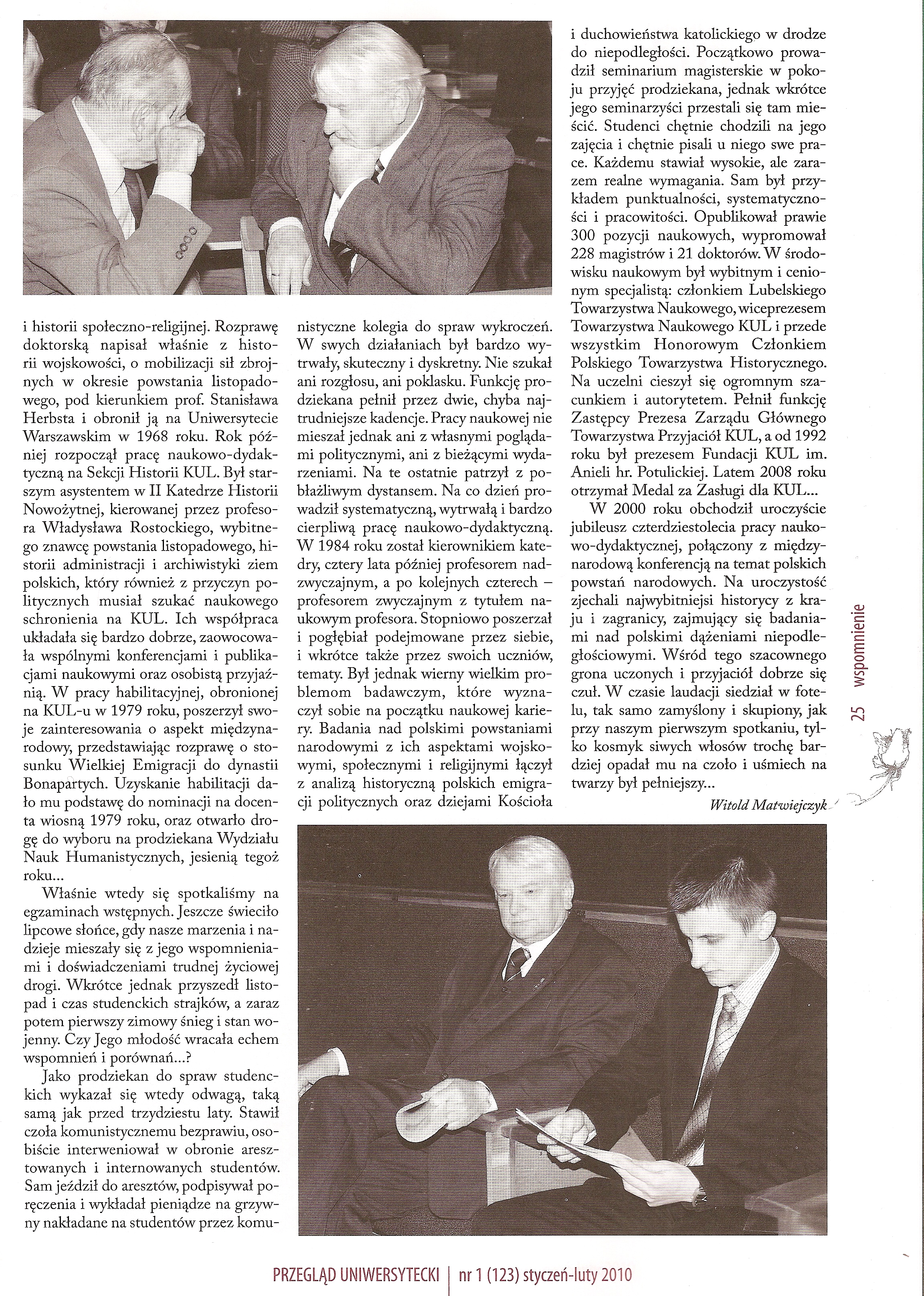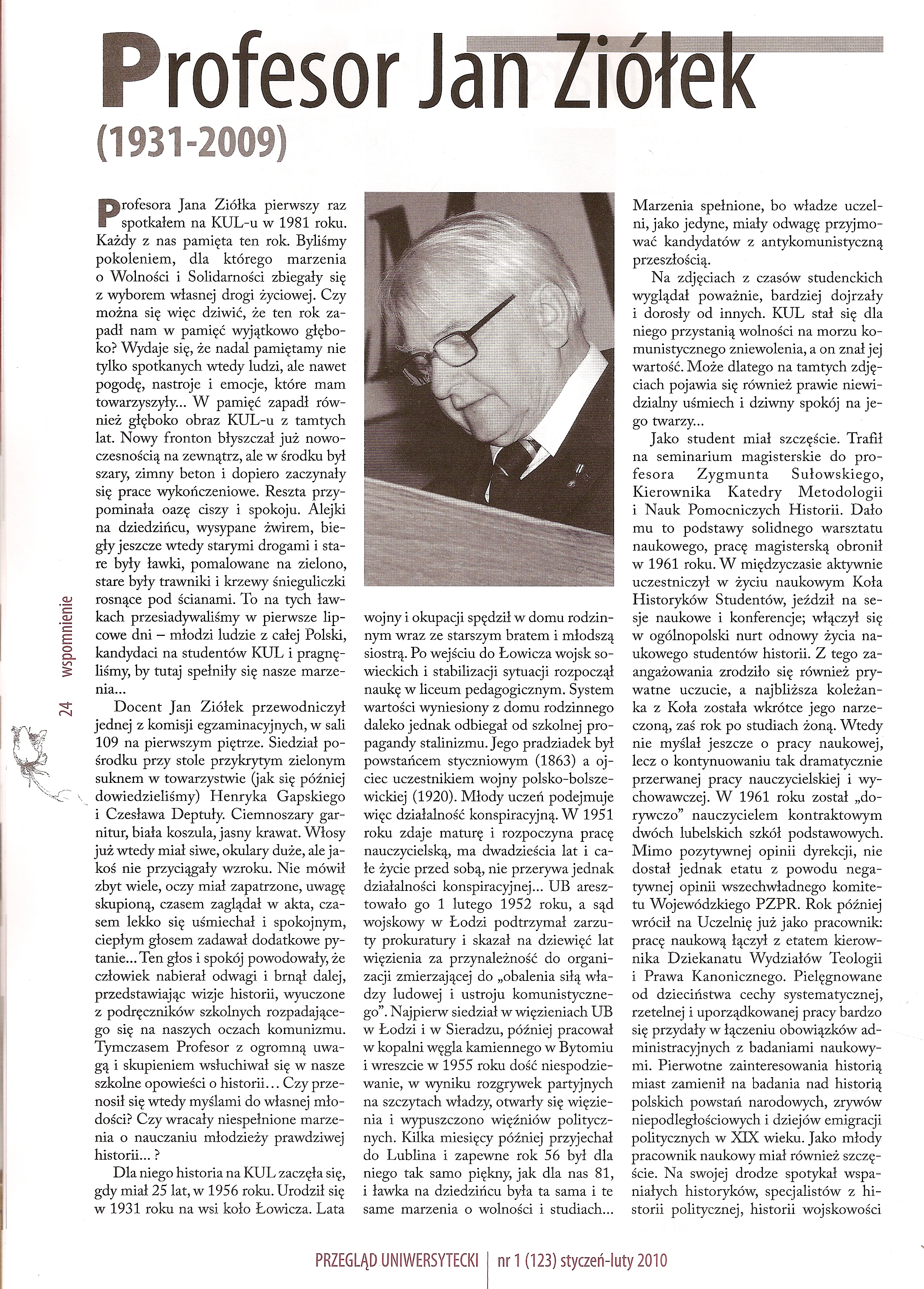29 VII 1931 - 5 IX 2009 (galeria zdjęć - AKF - wspomnienia profesora, Przegląd Akademicki 1/2010 s. 24, s. 25, sylwetka i publikacje)