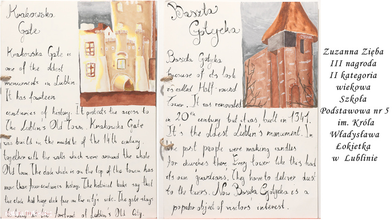 Prezentujemy galerię prac plastycznych uczniów szkół podstawowych nagrodzonych i wyróżnionych w IV Międzynarodowym Konkursie Językowo – Plastycznym „ MY TOWN". Organizatorami czwartej edycji konkursu była Szkoła Podstawowa nr 25 im. Władysława Broniewskiego w Lublinie oraz Wydział Nauk Humanistycznych KUL (Filologia Angielska), reprezentowany przez Panią dr hab. Urszulę Niewiadomską-Flis.