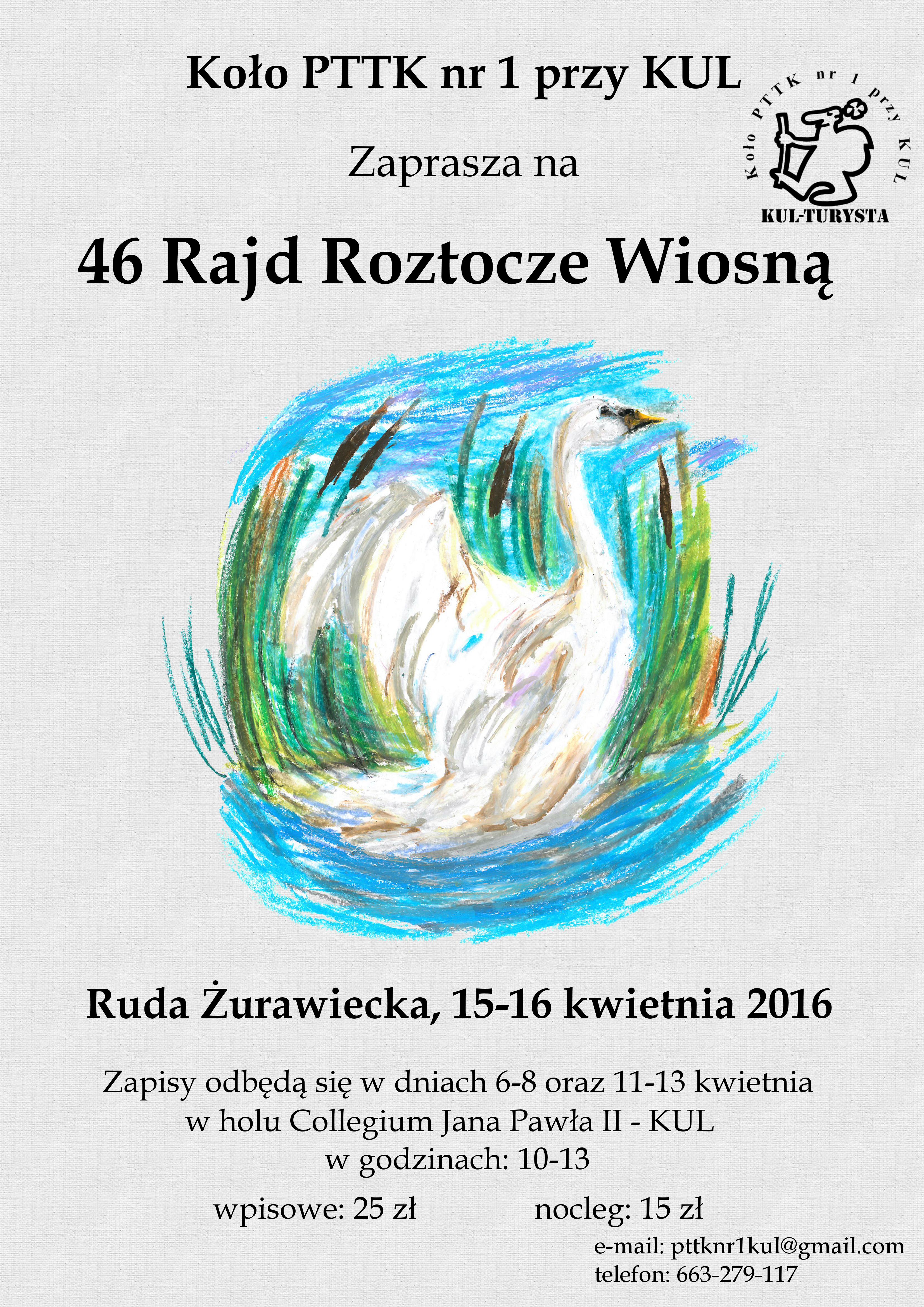 Koło PTTK nr 1 przy KUL zaprasza wszystkich chętnych na 46 Rajd Roztocze Wiosną, w dniach 15-17 kwietnia.