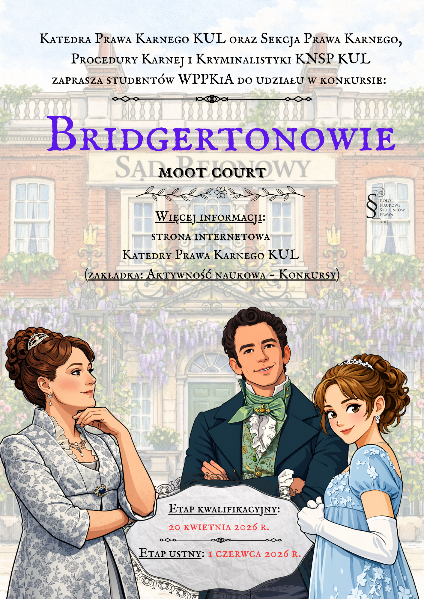 Projekty aktów oskarżenia (w ramach etapu kwalifikacyjnego) należy przesłać do 20 kwietnia 2026 r. na adres Katedry Prawa Karnego KUL - katkar@kul.pl .