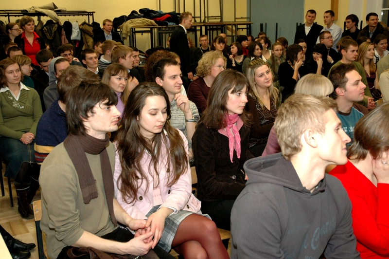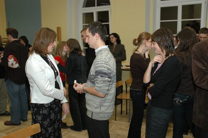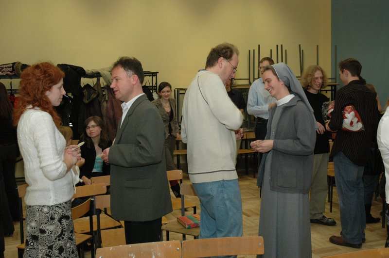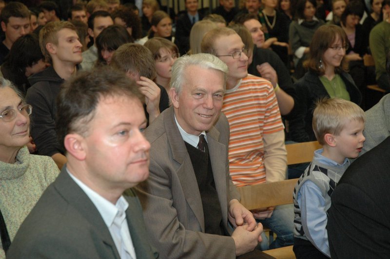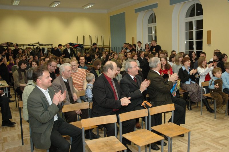 • Na przedzie siedzą profesorowie: C. Taracha, J. Konefał, H. Gapski, H. Wąsowicz. W drugim rzędzie: Elżbieta Olczak i prof. Stanisław Olczak oraz dr Piotr Plisiecki z synem Jasiem. W tyle sali dr Arkadiusz Stasiak i dr Hubert Łaszkiewicz