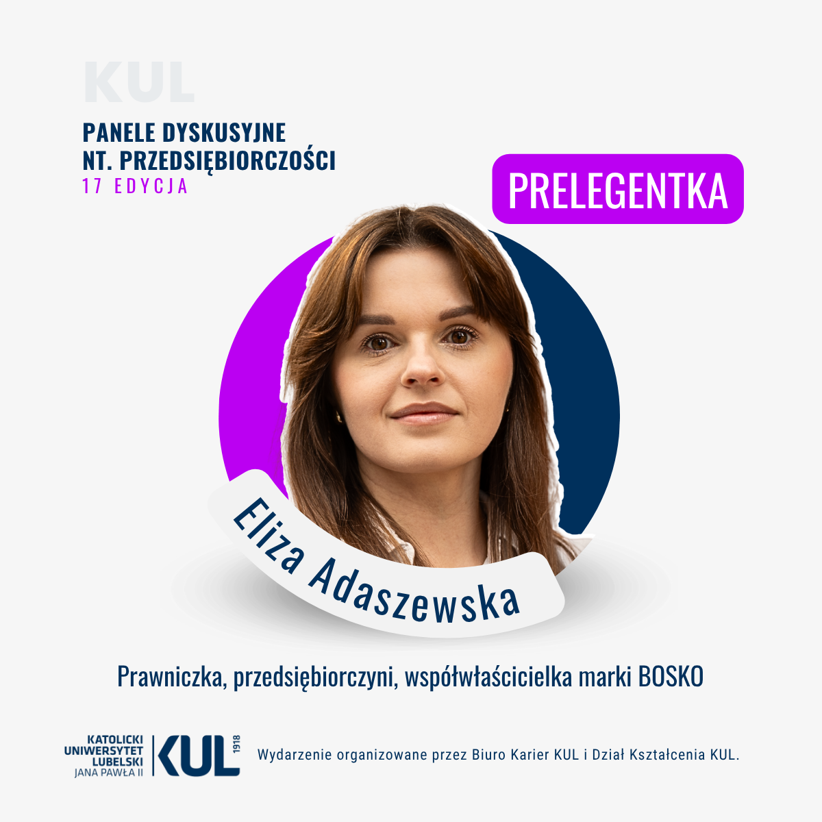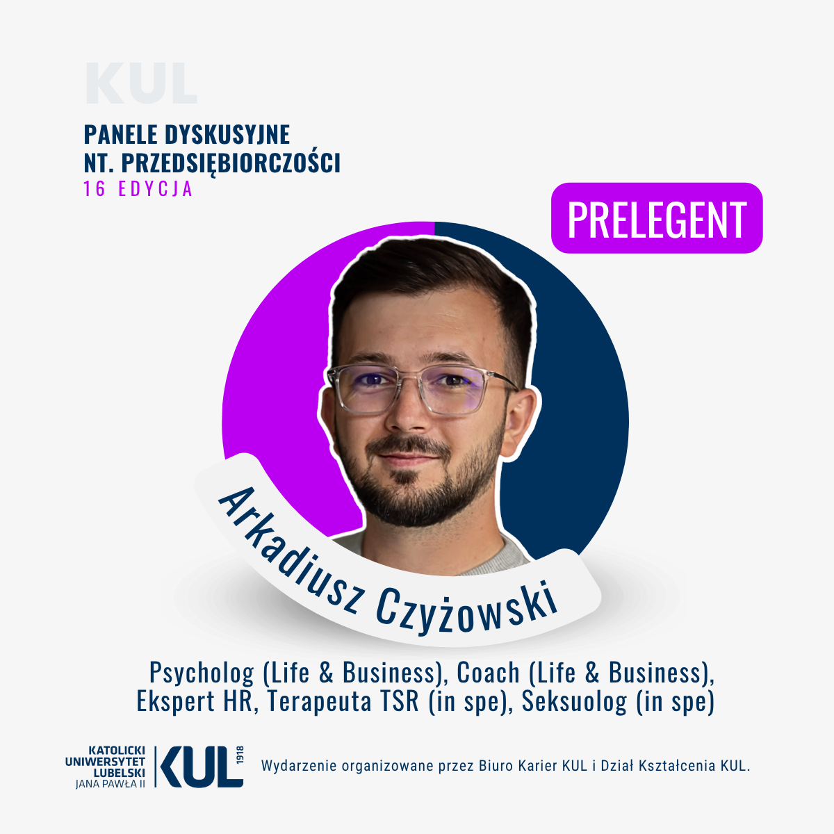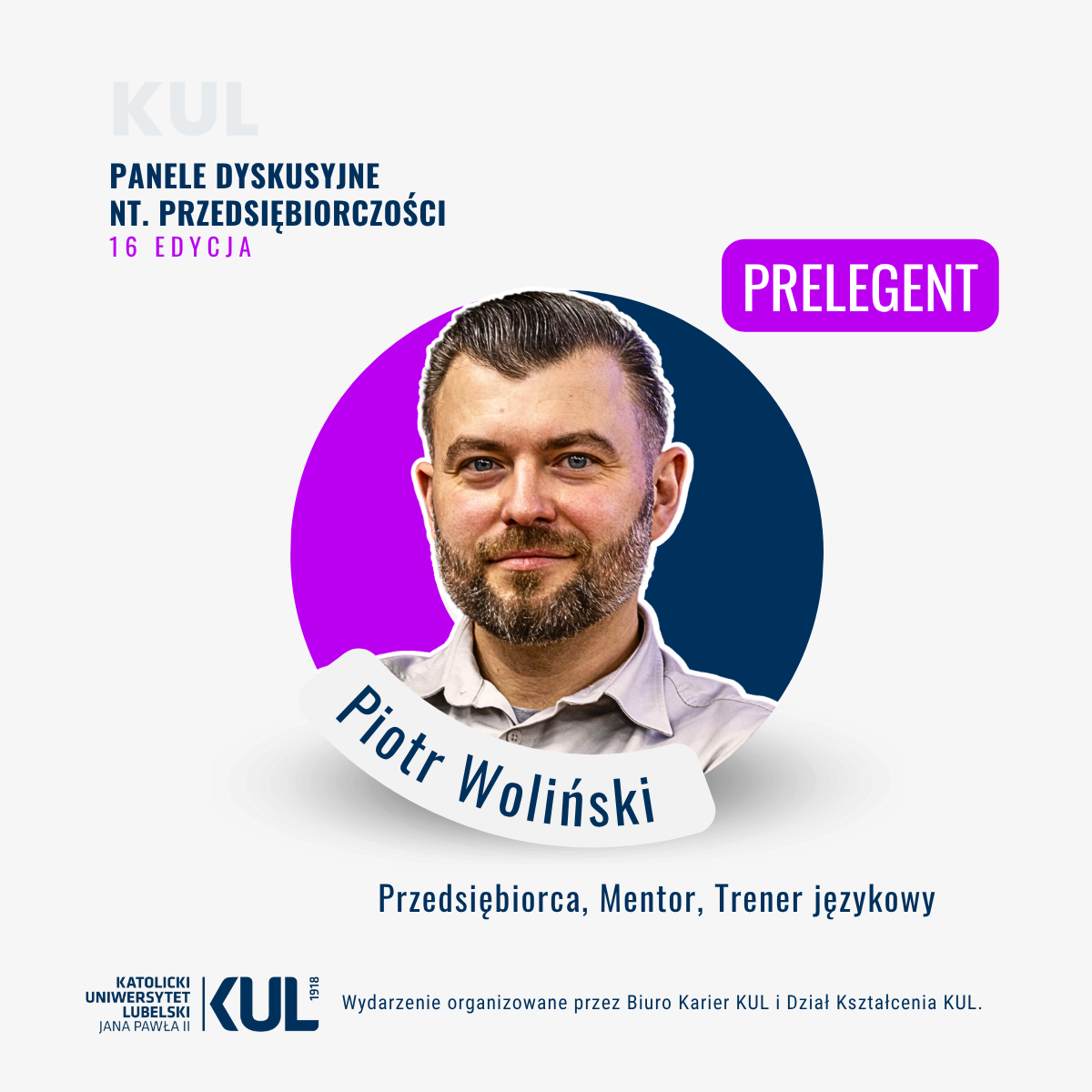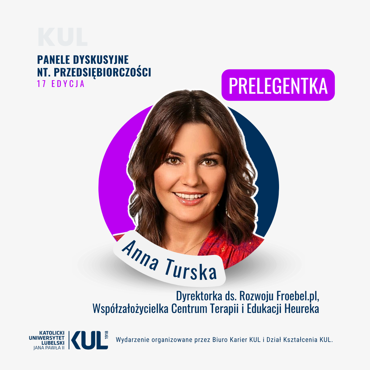 Wydarzenie organizuje Biura Karier KUL, Dział Kształcenia KUL oraz koordynator przedmiotu ogólnouniwersyteckiego „Przedsiębiorczość”, dr Dorota Tokarska.