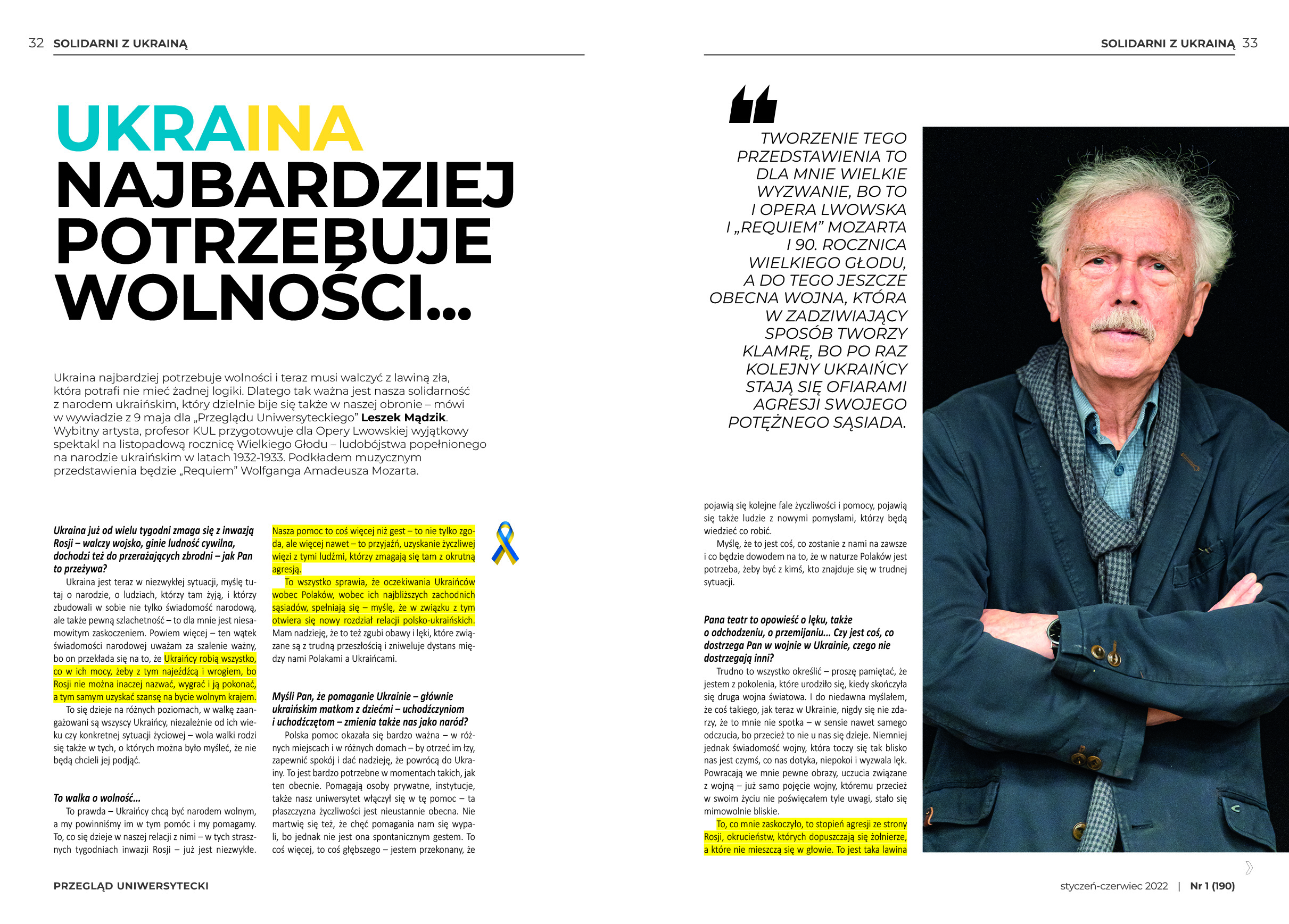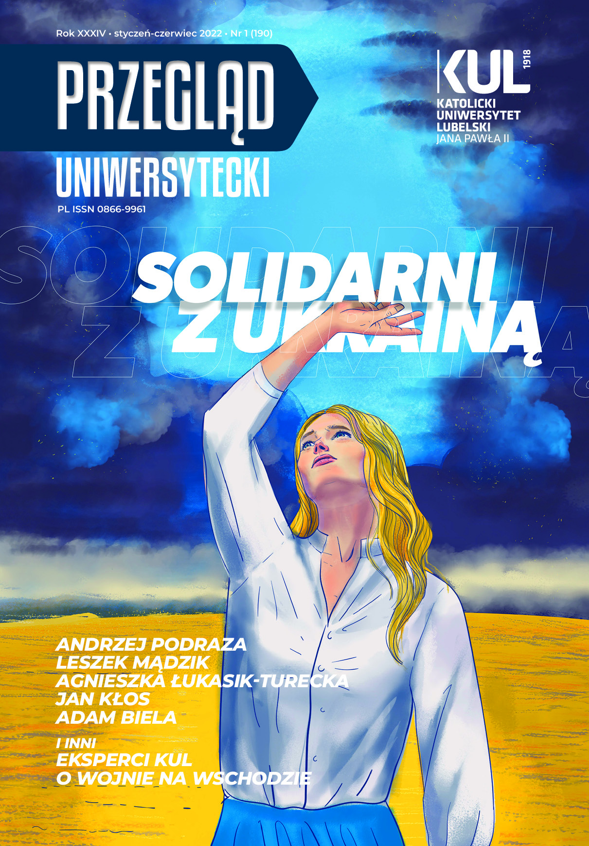 Profesorowie Andrzej Podraza, Jan Kłos, Agnieszka Łukasik-Turecka, Adam Biela czy Leszek Mądzik, a także wiele innych osób, m.in. ukraińscy studenci i dr Tetiana Jabłońska, która z Kijowa do Lublina na KUL trafiła po 24 lutego 2022 r., opisali dramat dziejący się za naszą wschodnią granicą, zaledwie kilkaset kilometrów od naszych domów. Trudno nie przejąć się losem tych, którzy nie za pośrednictwem mediów, ale realnie i z całą mocą odczuwają skutki wojny, stąd też w "Przeglądzie Uniwersyteckim" znajdą Państwo dodatek specjalny dla naszych ukraińskich przyjaciół.