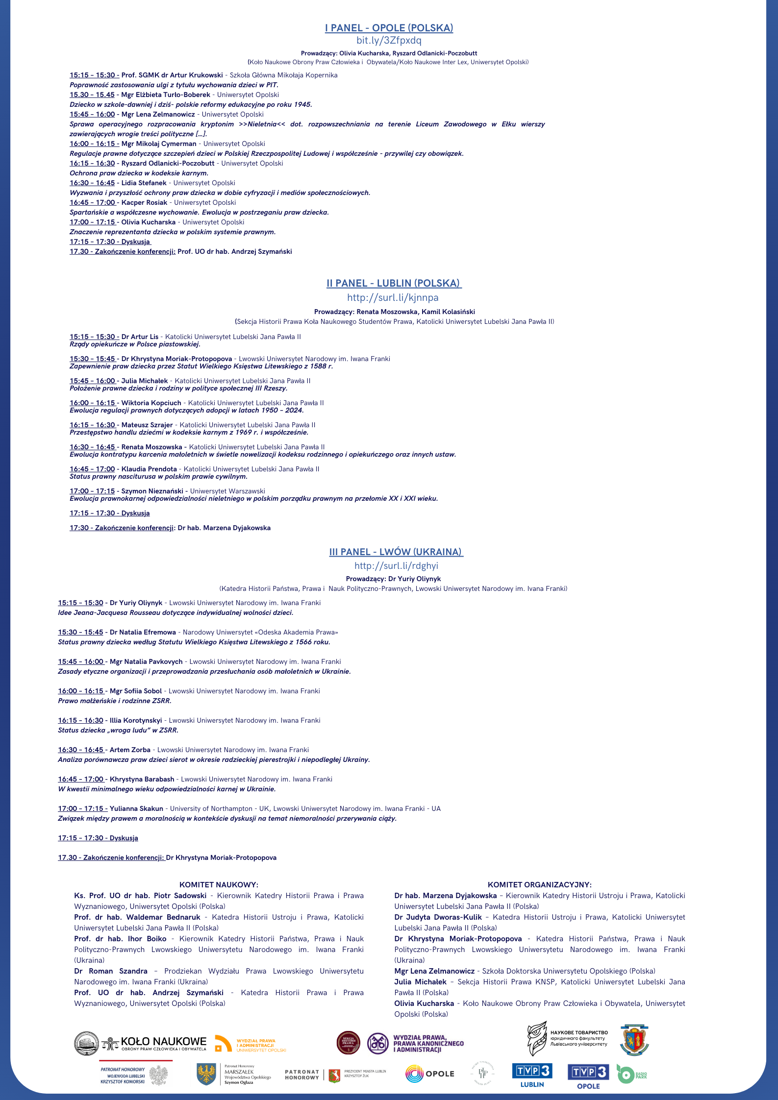 Wydarzenie zgromadziło wybitnych specjalistów i naukowców z całego świata (Albania, Bułgaria, Chile, Estonia, Meksyk, Turcja, Polska, Ukraina, Węgry), którzy podzielą się swoimi badaniami i refleksjami, dotyczącymi dziecka i funkcjonowania rodziny w kontekście historycznym, społecznym i prawnym.