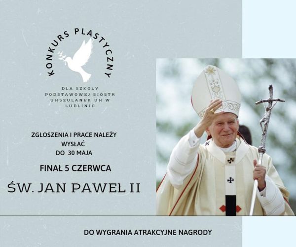 zaprasza uczniów partnerskiej Szkoły Podstawowej Sióstr Urszulanek UR w Lublinie do udziału w konkursie plastycznym pt. "Jan Paweł II - przyjaciel młodzieży."