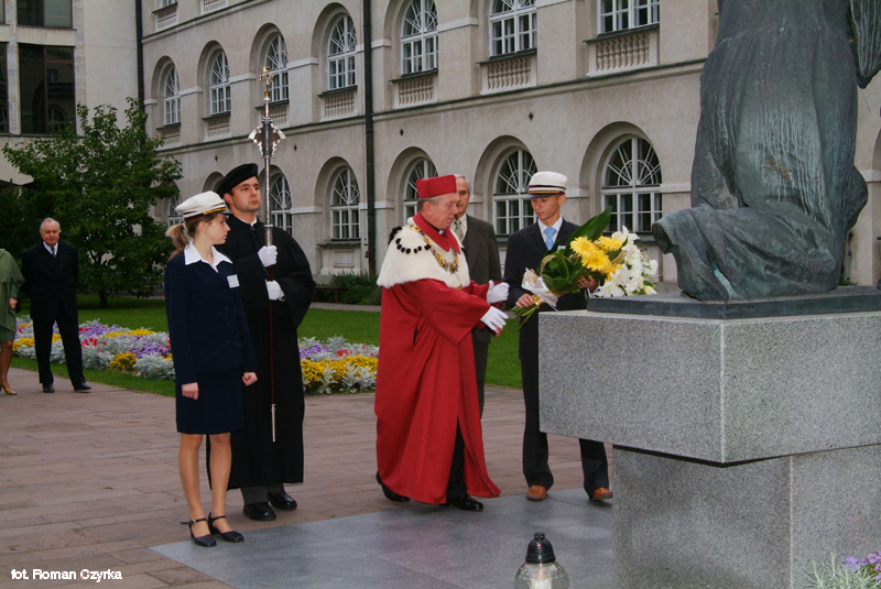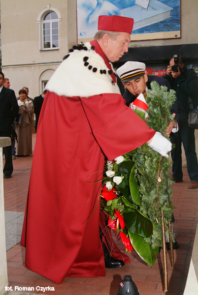 • Rektor KUL ks. prof. dr hab. Stanisław Wilk składa wieniec pod tablicą upamiętniającą wizytę Jana Pawła II w Katolickim Uniwersytecie Lubelskim