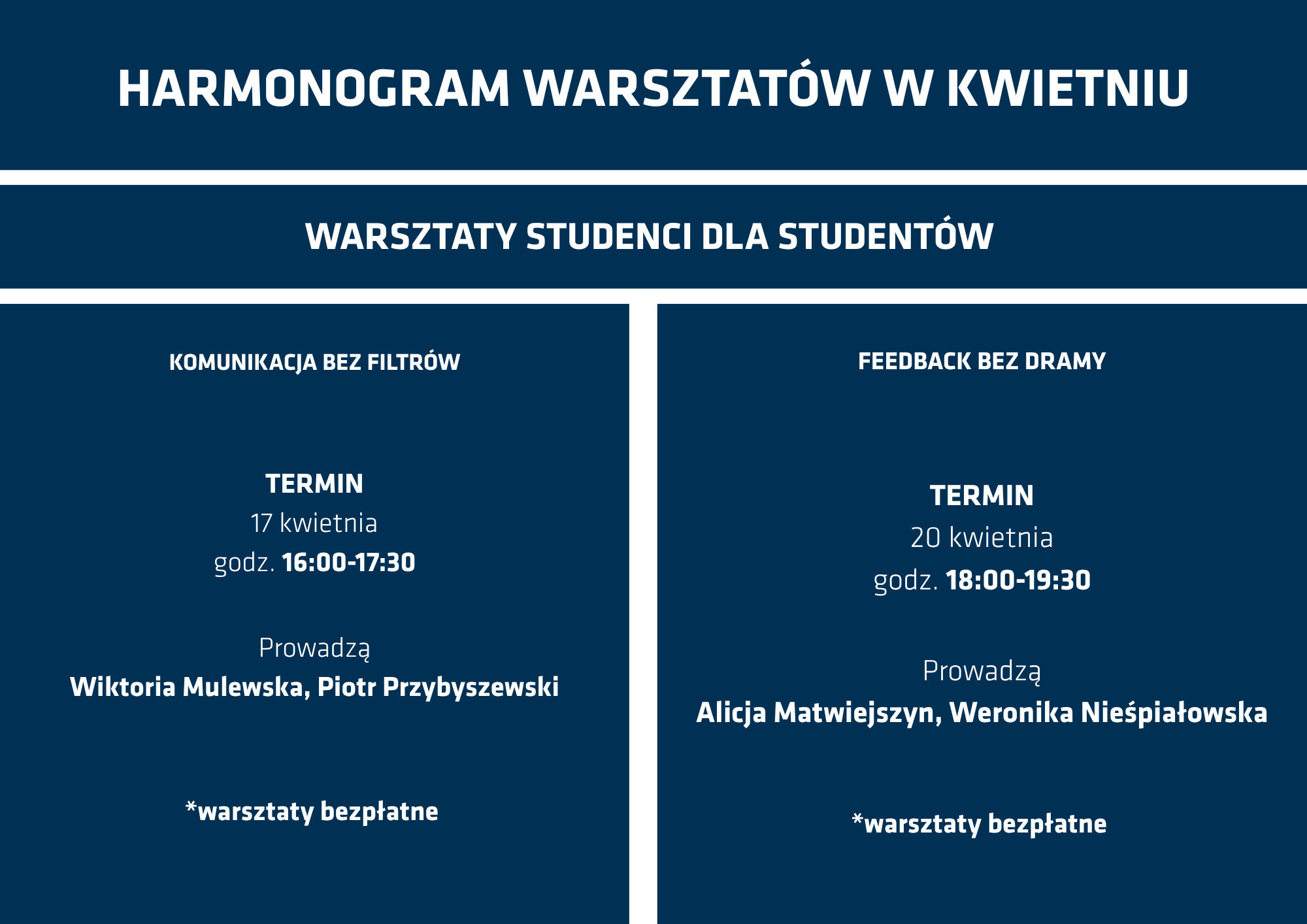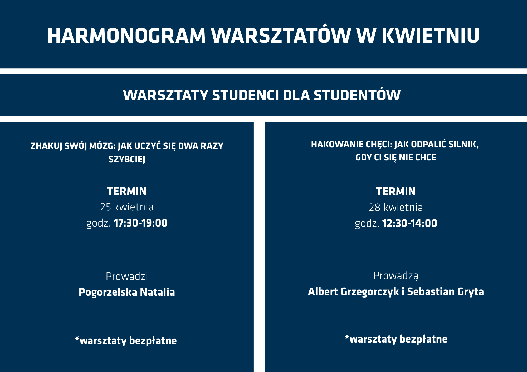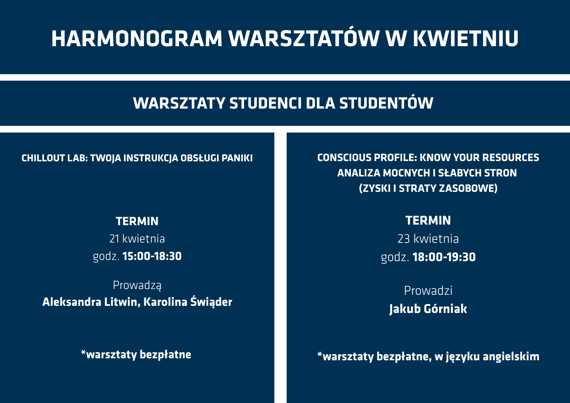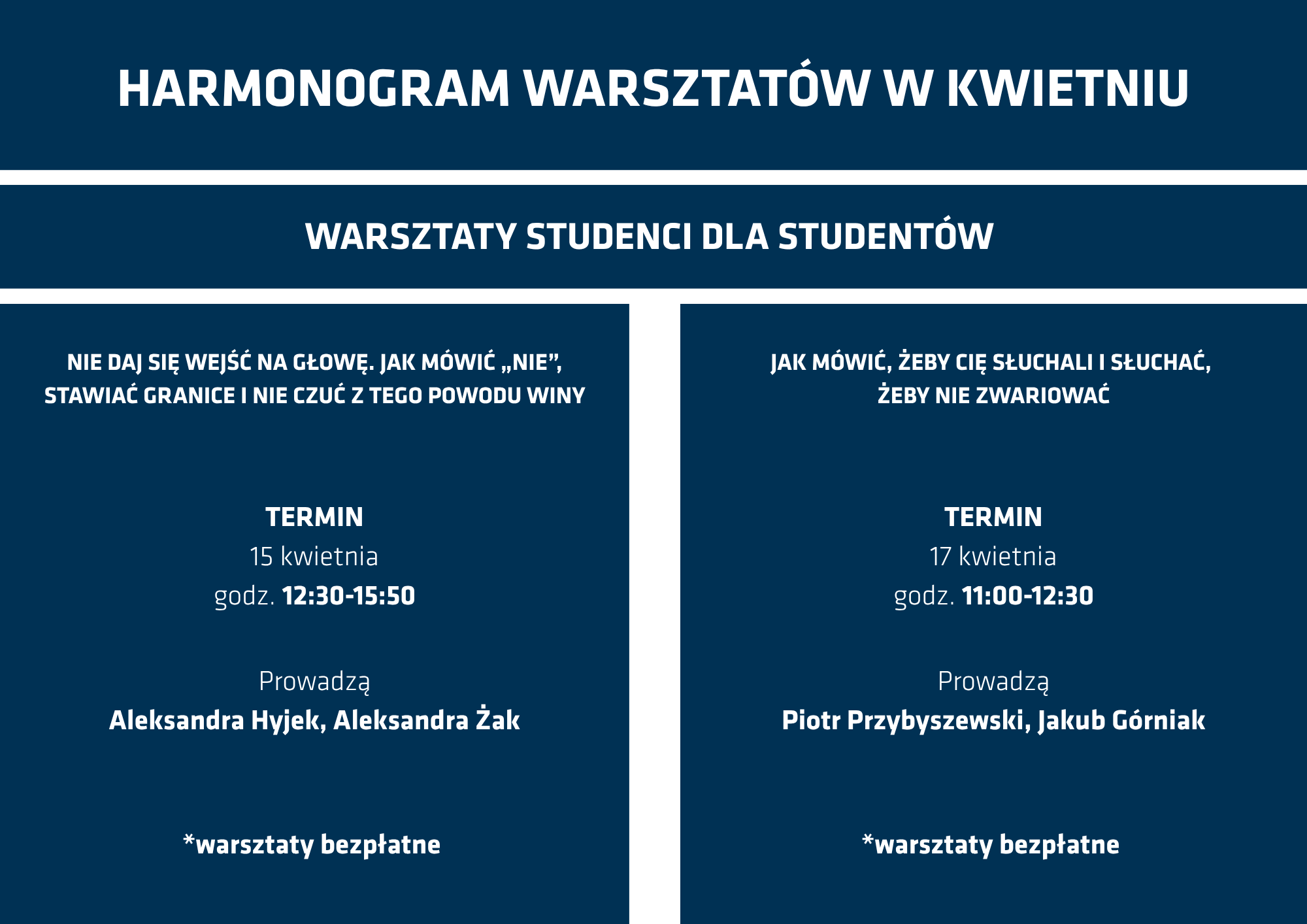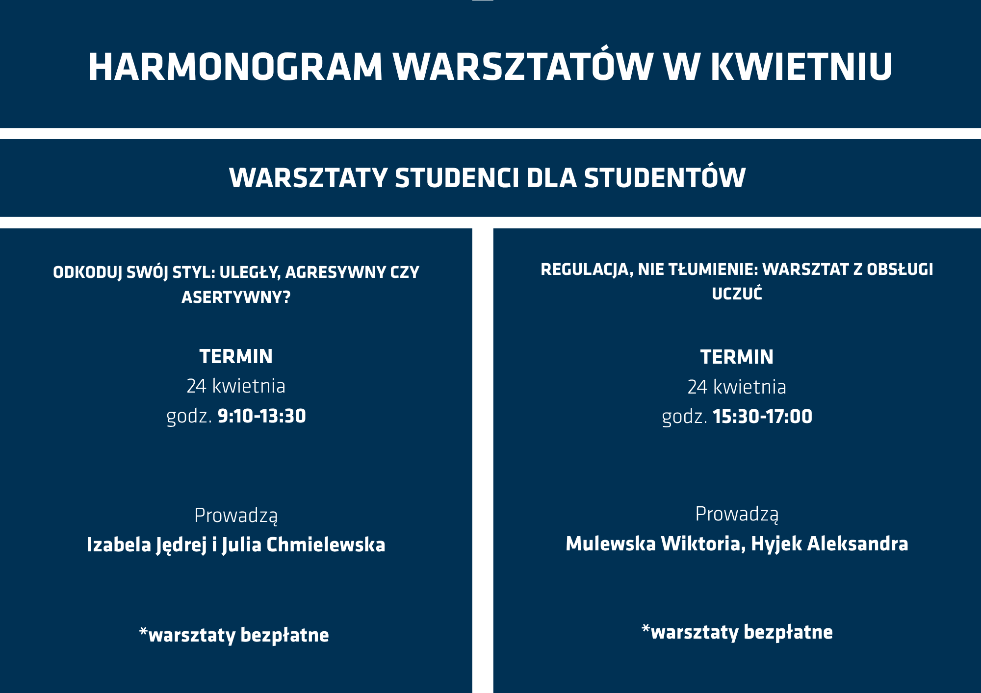 Pełny harmonogram warsztatów ,,Studenci psychologii KUL dla studentów''