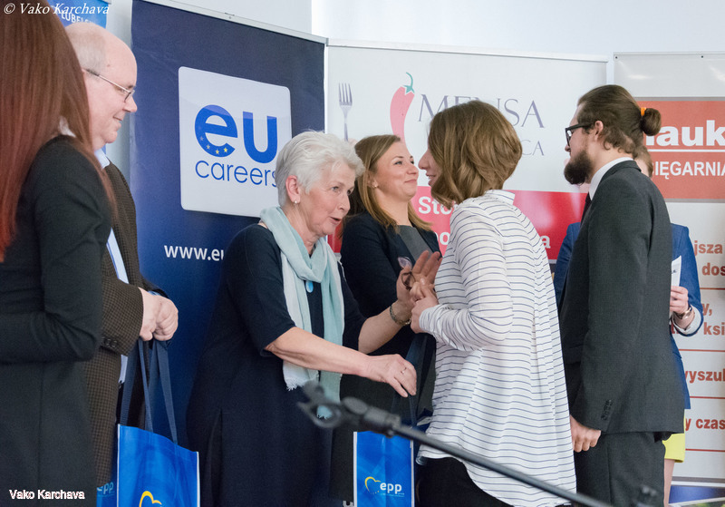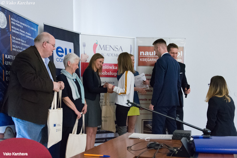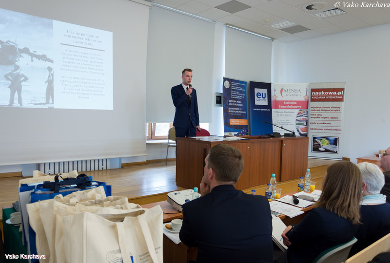 Z satysfakcją informujemy, iż w dniu 9 maja 2017 roku odbyła się II edycja organizowanego przez nas konkursu European Public Speaking Competition, w którym główną nagrodą był staż w Biurze Posła do Parlamentu Europejskiego Krzysztofa Hetmana w Brukseli. Uczestnicy mieli za zadanie zaprezentować prezentację w języku angielskim zgodną z naszym hasłem tematycznym. W tegorocznej edycji udział wzięło 10 finalistów, reprezentujących takie kierunki studiów jak prawo, European Studies, psychologia czy stosunki międzynarodowe. Hasłem tematycznym minionej edycji było: „60th anniversary of signing the Rome Treaties – the evolution of the European integration since 1957”.