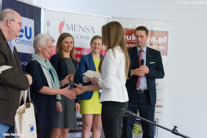 I MIEJSCE oraz nagrodę w postaci płatnego stażu w biurze Posła do Parlamentu Europejskiego w Brukseli, Krzysztofa Hetmana otrzymała: