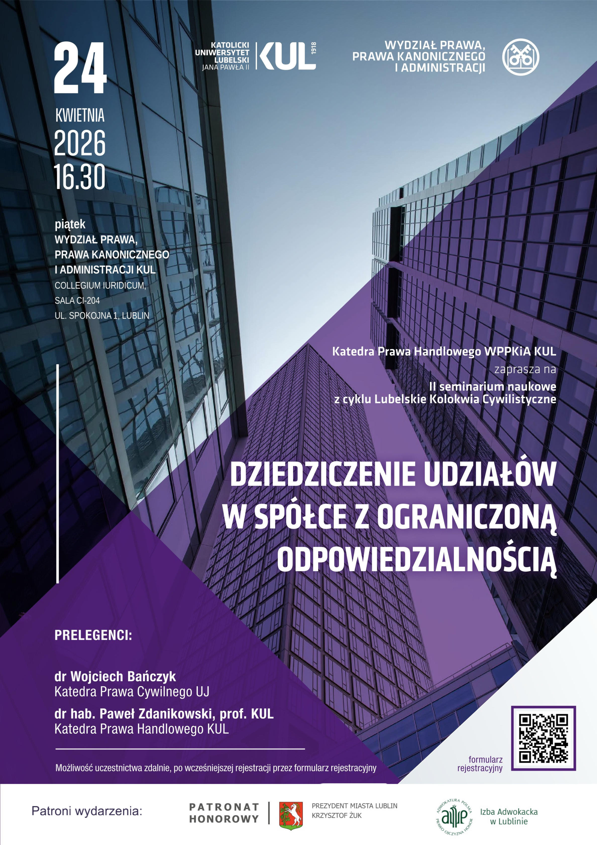 Wydarzenie rozpocznie się w dniu 24 kwietnia 2026 roku o godz. 16.30 w sali CI - 204 (Collegium Iuridicum ul. Spokojna 1).